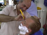 September 2001. Welding repairs to Okke's bike, Istanbul.